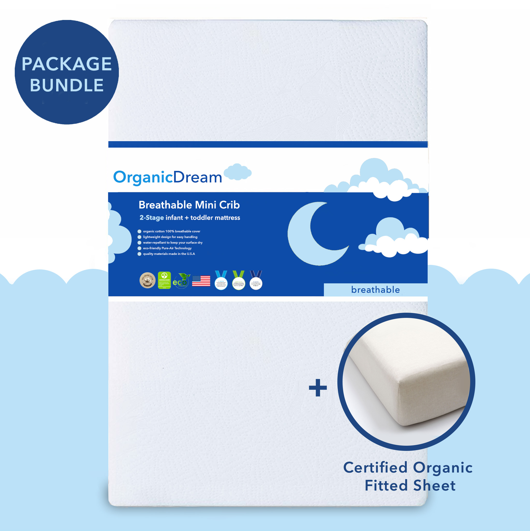 Mariah, Organic Dream customerThe best in infant sleep. This Breathable Mini Crib 2-Stage Lightweight mattress is constructed from hypoallergenic organic cotton to provide comfort and premium support for your child. This 2-Stage mattress comes with an infant and toddler side to grow with your child. This product in Made in the United States with Organic Cotton.