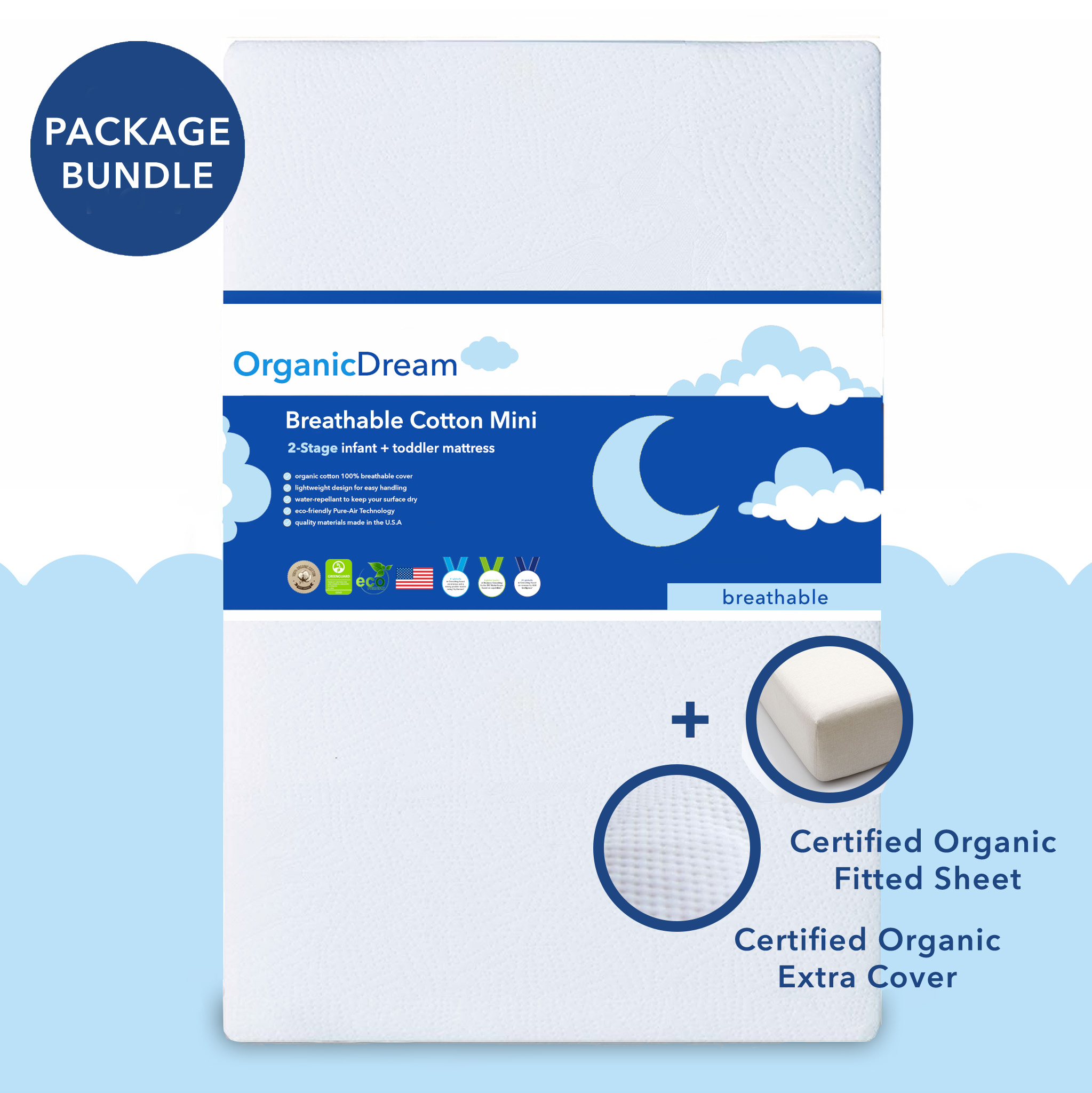 Amber, Organic Dream customerThe best in infant sleep. This Breathable Cotton 2-Stage Mini mattress is constructed from hypoallergenic organic cotton to provide comfort and premium support for your child. This 2-Stage mattress comes with an infant and toddler side to grow with your child. This product in expertly crafted in the United States with Organic Cotton to provide comfortable sleep for little one's.