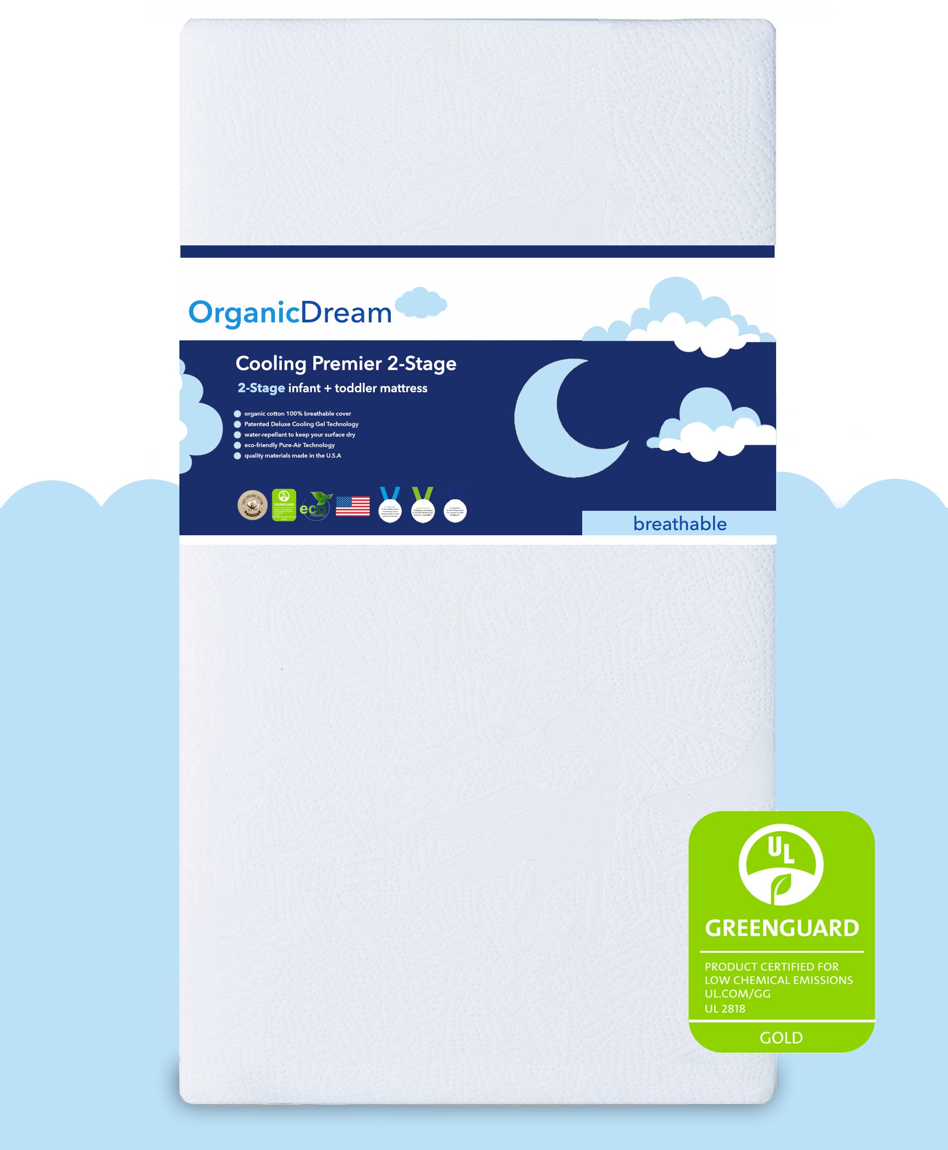 Amanda, Organic Dream customerThe latest in quality infant sleep. The Organic Cooling Premier 2-Stage mattress is made with hypoallergenic organic cotton to provide comfort and premium support for your child. This 2-Stage mattress comes with an infant and toddler side - which features Cooling Technology to provide easier sleep during active toddlerhood.